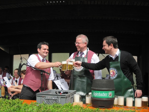 Am späten Vormittag zapfte Bürgermeister Klaus Mack mit wenigen Schlägen das Festbier an. Musikalisch brillant unterstützt wurde dieser Akt vom "durstigen Alphornspieler" Jens Bauer. Mit Blasmusik und weiteren solistischen Einlagen mit Dudelsack, Tuba und Waschbrett überzeugte das Blasorchester des Calmbacher Musikvereins seine Gäste bis in den frühen Abend.