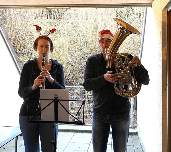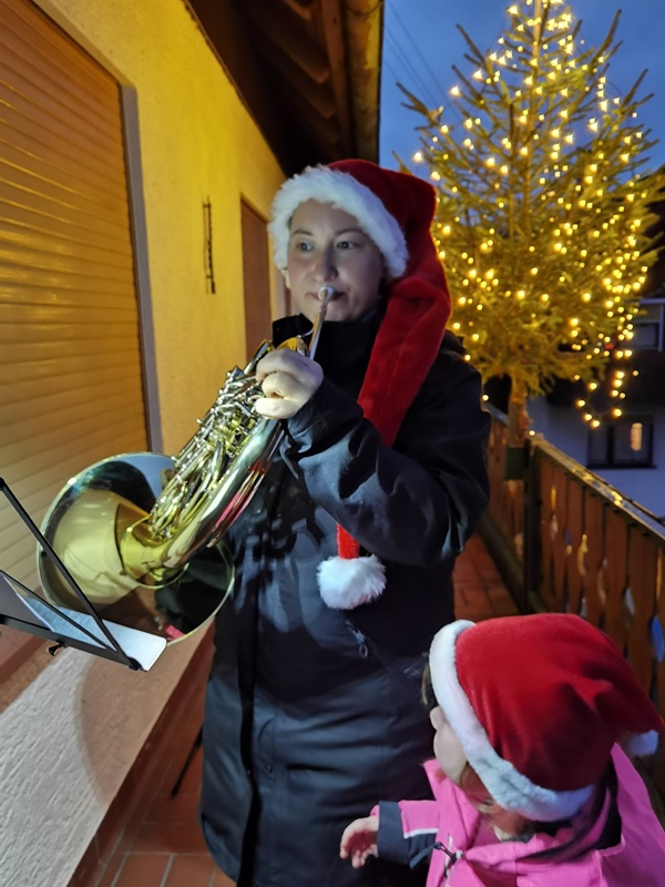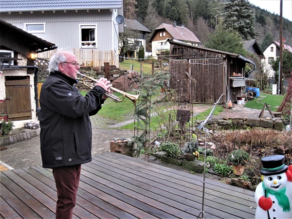 Beim wöchentlichen digitalen Stammtisch hatten sich die Musiker der Orchestervereinigung Calmbach (OVC) verabredet, an Heiligabend pünktlich um 15.30 Uhr die Instrumente auszupacken und vom heimischen Balkon oder aus dem Garten Weihnachtslieder für die Zuhörer in der Nachbarschaft zum Besten zu geben. Schnell waren entsprechende Noten über die in der Pandemie unverzichtbar gewordene E-MAail verteilt und so konnte es losgehen. In familiären oder partnerschaftlichen Kleinstgruppen wurde unter Beachtung der Corona-Vorschriften für zirka 20 Minuten musiziert. Nicht miteinander, sondern jedes Grüppchen für sich. Der eine oder andere Musiker konnte sogar die Mitmusizierenden von der gegenüberliegenden Talseite hören.