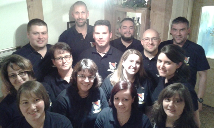 v.l.n.r.: Vordere Reihe: Rainer Locher, Margarethe Ihle, Angela Macholeth, Bernhard Locher, Harry Büchler, Uwe Göbel, Jens Debertshäuser, Mittlere Reihe: Daniela Mostroph, Andrea Knoop, Roland Kappler, Dirk Imhof, Hintere Reihe: Michael Riexinger, Alexandra Girrbach, Steffi Schmid, Gabor Kohl